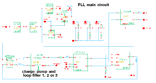 Der prescaler ist in der Version fuer c7na vom August 1998 verwendet und nicht weiter veraendert worden. Zusätzlich ist noch ein Sourcefolger integriert worden, um die Schleifenfilter DC als niederohmigen Monitorausgang bereitzustellen. Ausserdem sind drei Monitorausgänge fuer die digitalen low-speed Signale vorhanden.