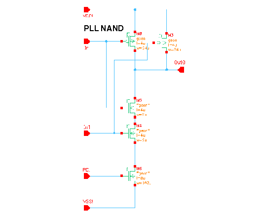Der PFD ist mit flankengetriggerten DFF aufgebaut, vgl. B. Razavi, RF Microelectronics" . Die Ladungspumpe ist bei allen Filtervarianten gleich und besteht jeweils aus zwei einfachen Schalttransistoren. Das Schleifenfilter ist variiert :