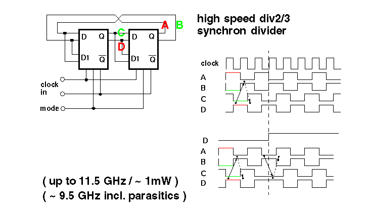 | CMOS 0.25 m m | 9.5 G | 8 mW@2.5V | div128/129 cycle stealing method, power down |